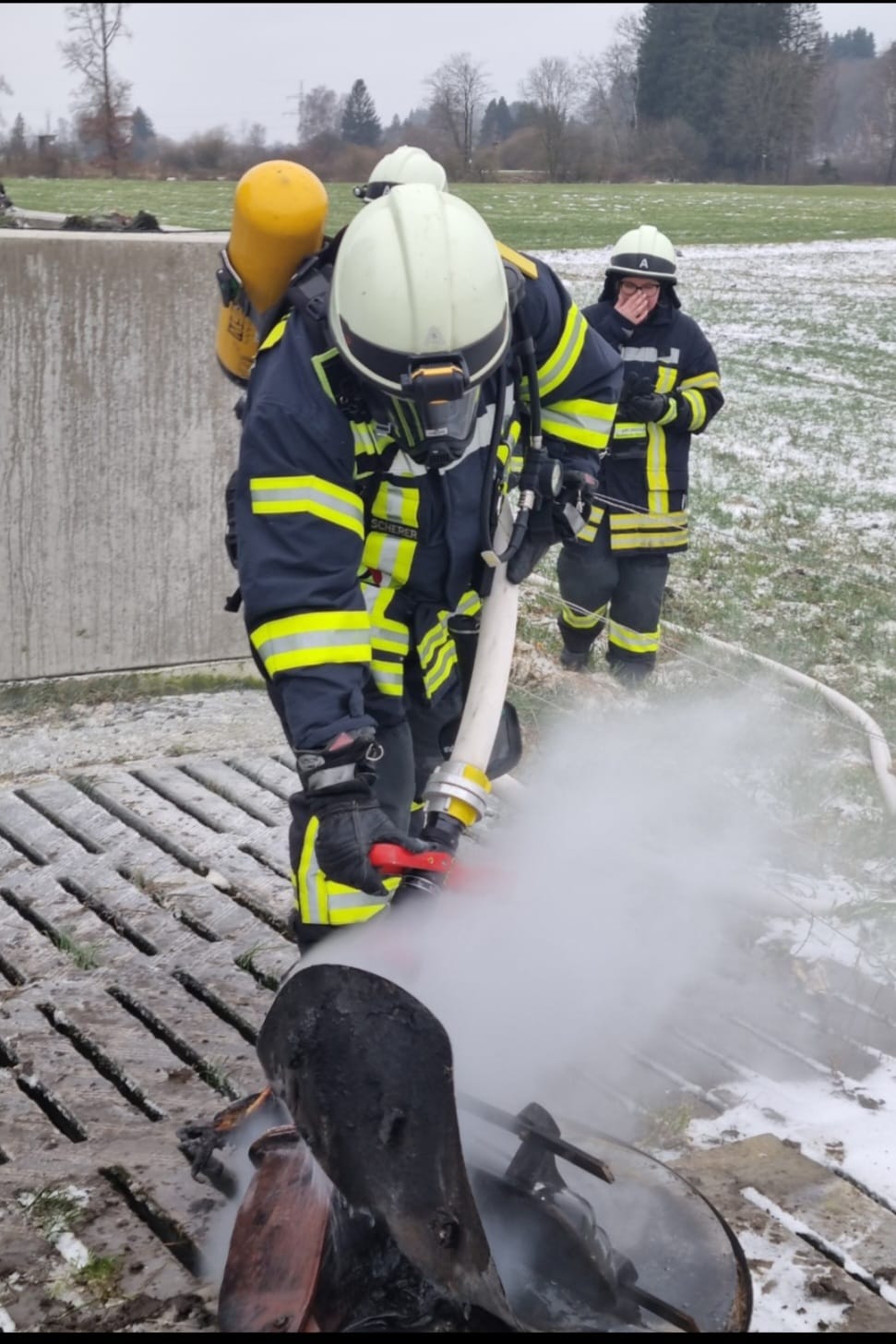 Wir wurden am Nachmittag des 24.12.25 zu einem Brand im Freien alarmiert. Bei Eintreffen an der Einsatzstelle war der Brand bereits von dem Eigentümer gelöscht gewesen. Wir kontrollieren die Brandstelle, leiteten nachlöscharbeiten ein und schnitten zu Sicherheit die Seitenwand des angrenzenden Stadels auf.