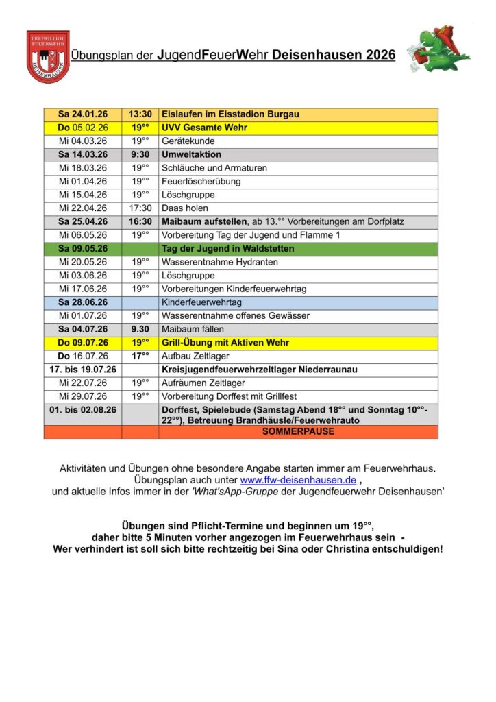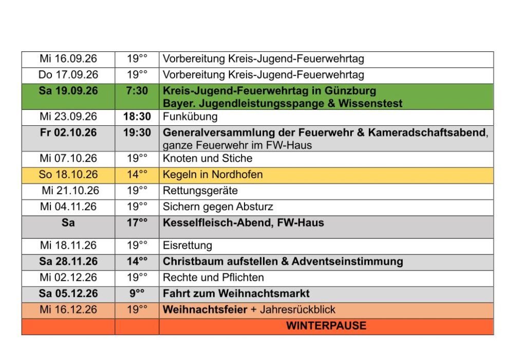 Übungsplan Jugendfeuerwehr 2026